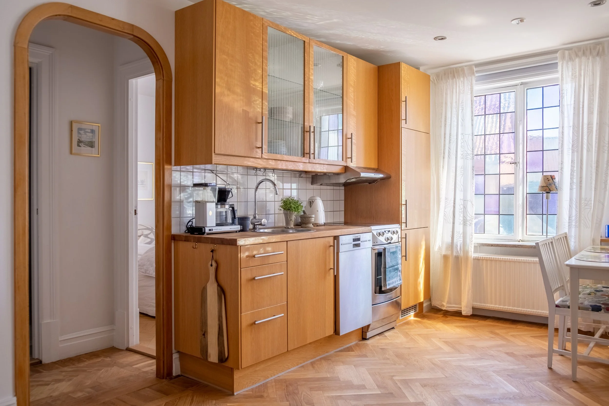 Fullutrustat kök med kyl/frys, spis, diskmaskin samt mikro.